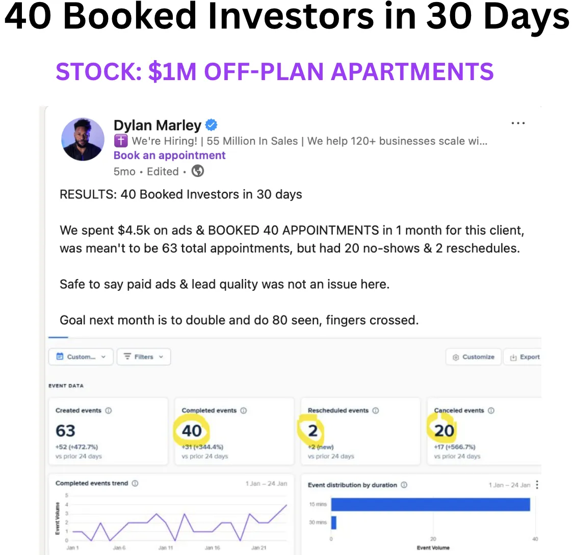 We run hyper-targeted ads using your stock renders, floor plans, and investor angles to generate qualified traffic through custom-built funnels.